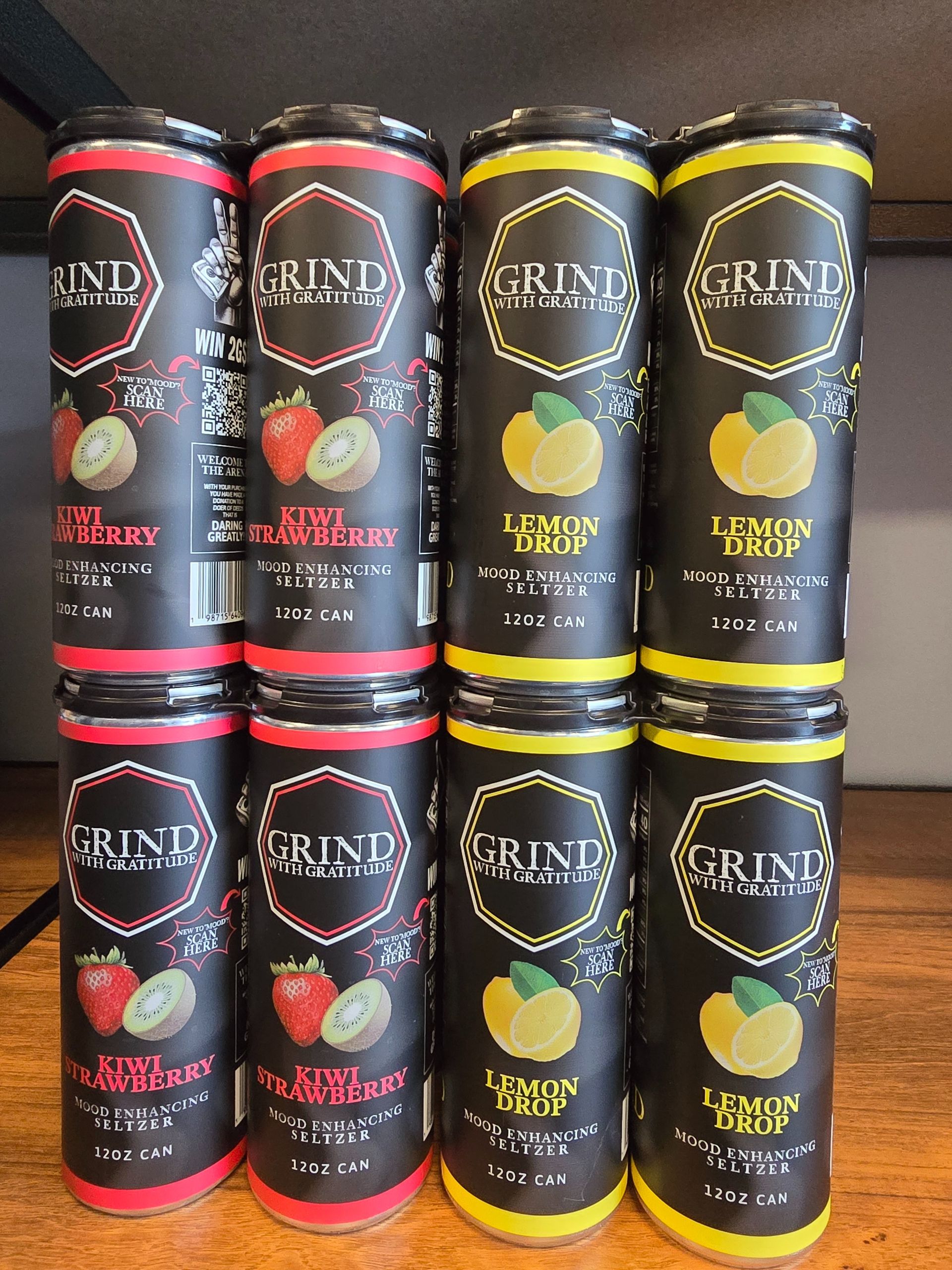 Launched in Wilmington and gaining traction, Grind with Gratitude offers THC seltzers in flavors like Lemon Drop, Kiwi Strawberry, and Blood Orange. A refreshing, mood-enhancing, non-alcoholic alternative to unwind with purpose.